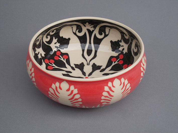 The essence of my work is creating patterns and applying them to ceramic forms which I make on a pottery wheel. I enjoy making patterns which are inspired from both nature, and international designs. Some of my most recent work reflects a fascination with the role of technology in our lives.
