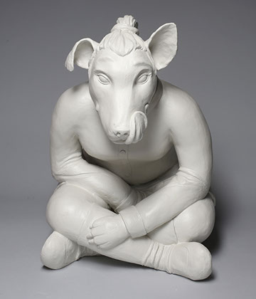 My sculptures are my self-portraits. They mirror my life. These sculptures show stages in my life when I had conflicts with my culture and the western society in relation to my identity and trying to fit in both worlds. My conflicts deal with body image, self-esteem, sexuality, peer influences, school, occupation and religion. I choose to use animals in my sculptures because I feel that sometimes people can connect more to animals than other human beings. The animals that I choose have references through culture, general or American society, and/or religion. The postures, outfits, and expressions all have these references as well. They document moments where I struggle to make decisions about who and what I should be. These decisions are sometimes made for my own self, my parents, or social norms. Through this journey of decision making, I question my own identity: Am I who I really want to be? Or am I a fraud (being what others want me to be)? Overall, the purpose of my work is to build a connection with people and hope that they can relate to me.