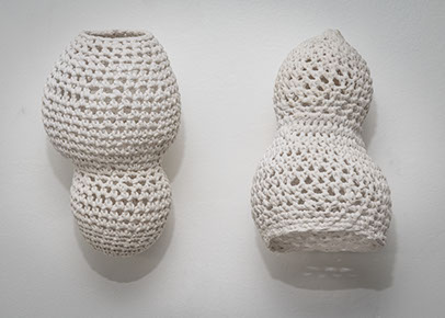 This work is concerned with the growth and form of living things. I am interested in the processes of composition, transformation and eventual decomposition of living things and the aesthetic similarities of these processes in nature. I use a single line of cotton yarn and crochet dimensional shapes derived not only from material and technique, but also from the close study of natural, fertile forms. With crochet, as with many other systems, changes are simply a matter of an increase or decrease in the number of units, in this case loops. There is contraction or expansion, continued mathematically within a certain range.