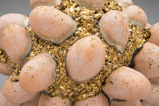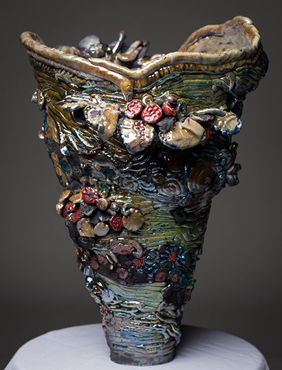My work has a sense of history. Clay is an ancient material and seems inexhaustible in its ability to express a sense of timelessness, endurance and expressive meaning. The firing process, rapid petrifaction, is the transformative process, resulting in a contemporary fossil. I assemble these petrified fragments into topographic landscapes, poised somewhere between growth and decay, recognition and abstraction, beauty and viscera. These qualities allow entry into microscopic and macroscopic worlds that often feel familiar.