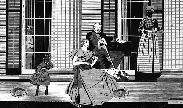 My recent work endeavors to blur the line between hand and machine juxtaposing woodcut and digital print. The Enterprising Machines series are works inspired by machine aesthetics that reference common tools and domestic utilitarian objects. My process begins with digital manipulations from vintage consumer catalogues published in the early 1900s for Pratt and Whitney Company tools, and Enterprise Manufacturing Company, maker of domestic gadgets. The digitally printed elements I compose recall blueprints or plans, and create a foundation for the modification of the context of these implements. Working from observation of actual objects allows for transposition and mutability between layers of printed and observed information. The objects explored are simultaneously transformed denying their original functional purpose and asserting an animated physical presence and internal narrative.